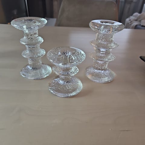 Iittala Festivo lasikynttilänjalat kirkas lasi. Kynttilänjalat ovat kirkasta, kuplivaa lasia. Myydään samassa paketissa kaksi kappaletta kaksisolmoisia kynttilänjalkoja ja yksi nelisolmuinen.