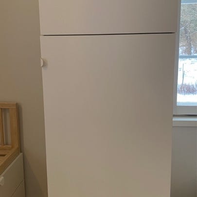 Selling a practical and space-saving IKEA PLATSA storage system that fits perfectly around a 140 cm wide bed (as shown in the picture). The unit includes two tall wardrobes on either side for hanging clothes and pull-out drawers. The top cabinets and built-in bedside shelves offer plenty of storage space.