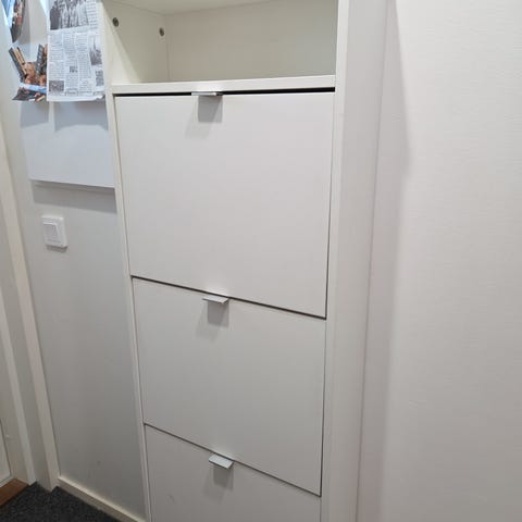 Kuvan mukainen naulakko/kenkäteline. Runko metallia ja ”istuinosa” puuta/kalustelevyä. Istuin osassa pieni kolhu.