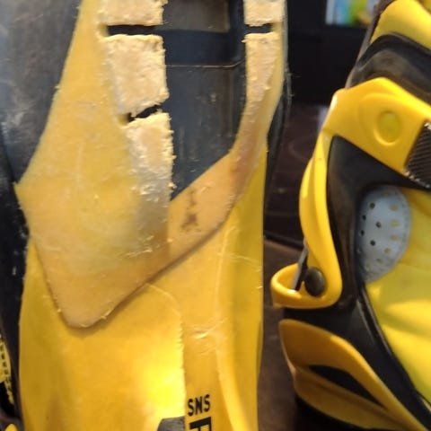 Monta vuotta käytössä olleet lasten/nuorten Salomonin luistelumonot SNS-siteille.