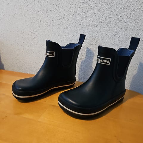Bundgaard lasten kumisaappaat, koko 24. Unisex-malli, tummansininen väri valkoisilla yksityiskohdilla. Sopivat sekä tytöille että pojille sade- ja välikausikeleihin. Kumipintaiset saappaat, joissa vetolenkki varressa helpottamassa pukemista. Profiililla kuvioitu pohja antaa pitoa liukkaalla alustalla.