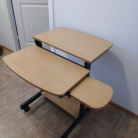 Annetaan koulupöytä. Tasossa on käytönjälkiä. Laatikko osa porattu tasoon kiinni. Vain nouto.