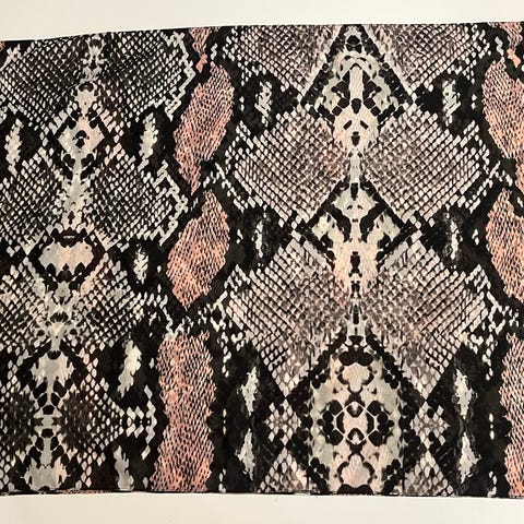Huivi on 74 cm leveä ja 100 cm korkea. Veikkaan, että materiaali on polyesteriä.