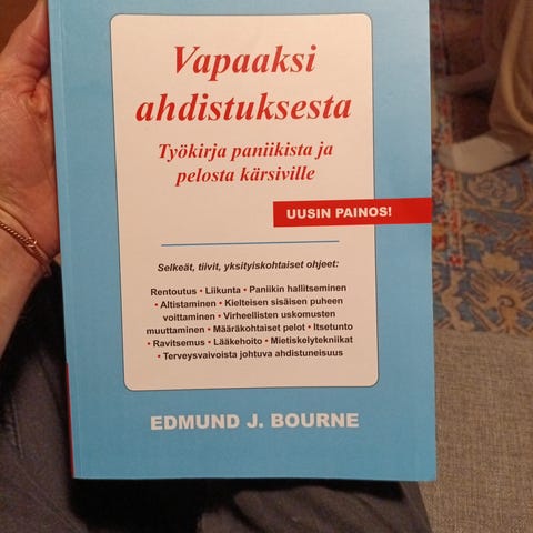 Edmund J. Bournen teos "Vapaaksi ahdistuksesta – Työkirja paniikista ja peloista kärsiville" on psykologiaan ja mielenterveyteen liittyvä kirja. Kirja käsittelee ahdistusta, paniikkihäiriötä ja pelkoja sekä tarjoaa vaiheittaisia harjoituksia ja ohjeita niiden hallintaan.