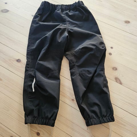 Todella hyväkuntoiset Reiman kuorihousut. Arasta väristä huolimatta tahrattomat, aavistus tummentumaa havaittavissa paikoin, kun oikein tarkkaan tarkastelee. Vedenpitävä, pehmeä ja mukava materiaali.