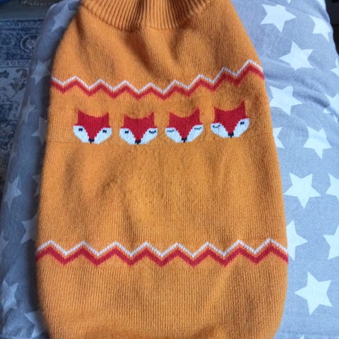 Pienen koiran neule. Ehkä kerran käytetty kun jäi jo pieneksi.