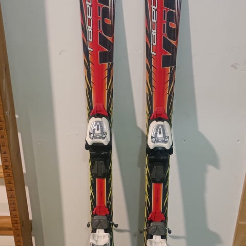 Kaksi kautta lasketut laskettelusukset. Hyvässä kunnossa. Pohjassa jotain jälkiä mutta ei vaikuta käyttöön. Helposti säädettävät (ilman työkaluja) siteiden pituus.