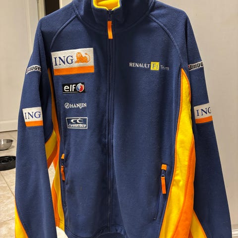 Vintage-tyylinen moottoriurheiluaiheinen takki, jossa on "World Series Racing Team" -teksti.