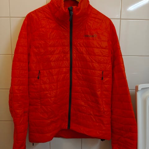Primaloft täytteinen kevyttoppis. Erittäin vähän käytetty. Koko aika nafti L-kooksi ja lähempänä M kokoa.