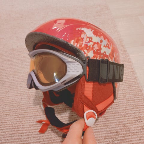 Lasten laskettelukypärä, hyvin vähän käytetty (koko 55-58 säädettävä), mukana suojalasit