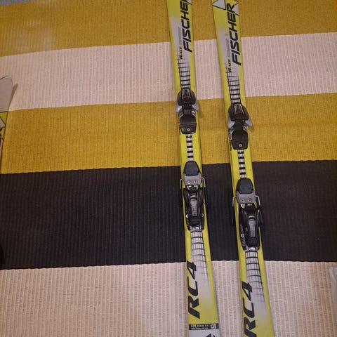 Fisher Race 130 cm -laskettelusukset. Molemmissa suksissa yksi isompi naarmu.