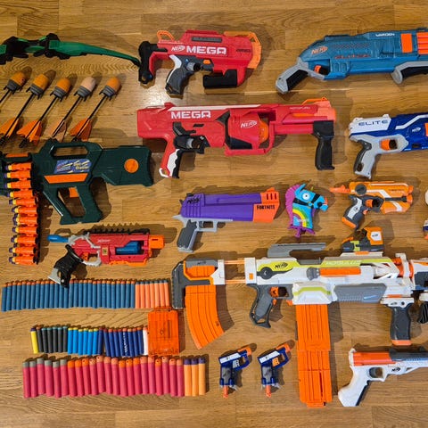 9 pyssyä, varalippaita, ampujan liivi + paljon ammuksia!