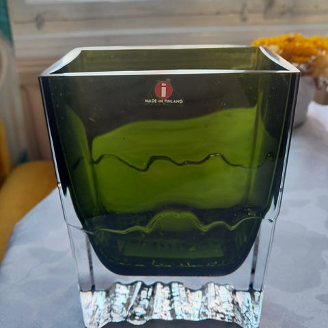 Maljakko Raito, kirkas, Tapio Wirkkala, Iittala tarra ja signeerattu TW