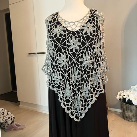 Poncho reilumpi jäänsininen Novita Butterfly langasta