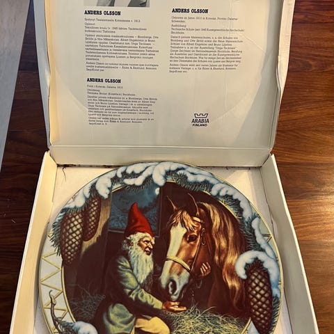 Joululautanen, tonttu ja hevonen Arabia