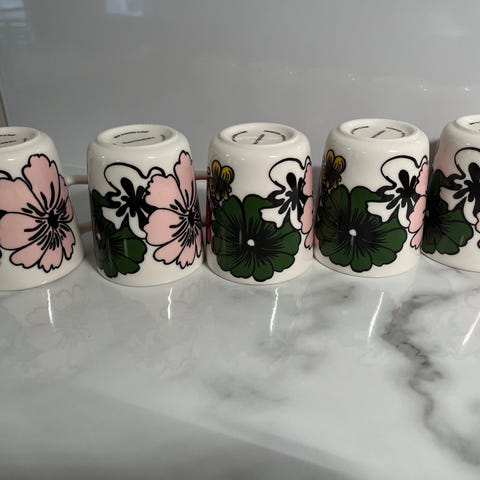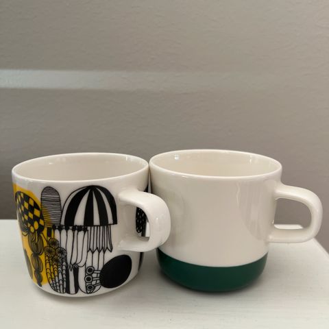 Marimekko Oiva kupit "Pyykki". 2 kpl, 18 e/kpl. Ehkä kahdesti käytetty.