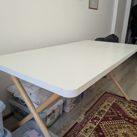 Pinta kulunut, mutta pöytäliinan kanssa toimii hyvin!