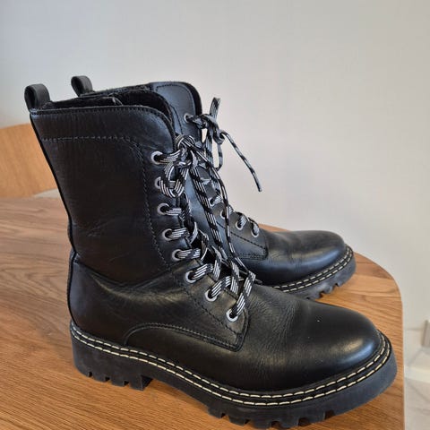 Todella vähän käytetyt vuorilliset kengät puolipitkällä varrella. Kengän materiaali nahkaa. Nauhat + sivuvetoketju.