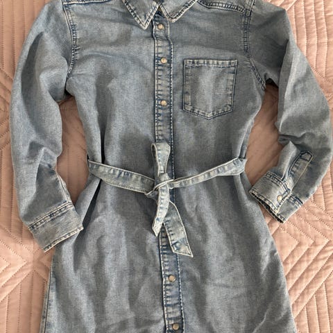 Ihana farkkuhame. Edessä koristetaskut. Kuminauha kiristys. Pituus n. 34cm.