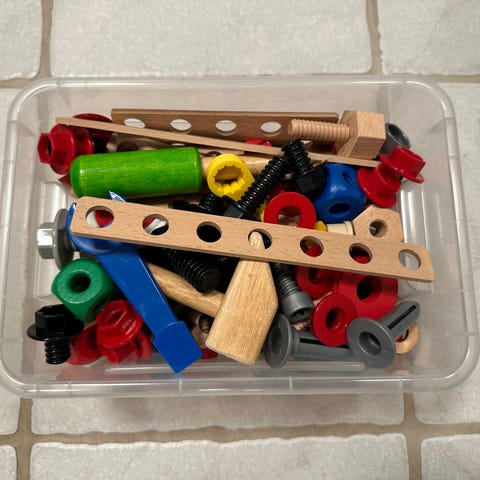 Listaan leluihin, koska tarkoitettu lapsille, mutta työkalut ovat oikeita, puutöihin tarkoitettuja välineitä. Valmistettu Saksassa.