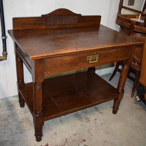 Rottingista ja bambusta 1900 -luvun alussa valmistettu ' Colonial ' tyylinen tarjoilupöytä.