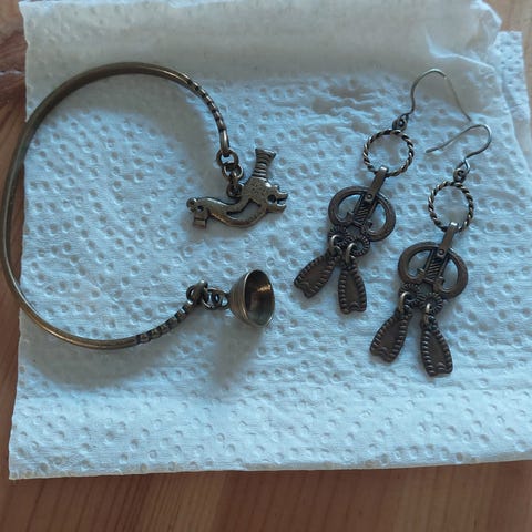Erilaisia pronssi koruja Kalevala. Kolme riipusta, korvakorut ja sormus. Myydään settinä ei erikseen. En toimita vain haku. Maksu käteisellä.