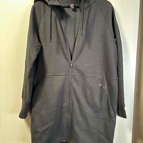 Harmaa naisten hupparitakki, Stadiumin merkki Soc, hieman pidempi malli, koko reilu S (menee myös M).