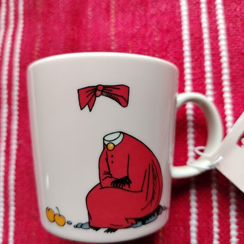 Uusi, vitriinissä säilytetty muki. Laput ja tarra kiinni.