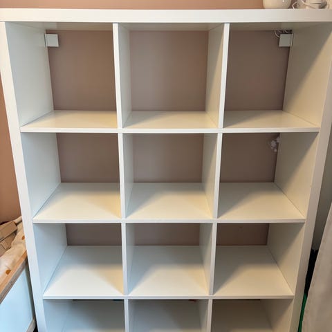 Kuvanmukainen hylly jossa ovia ja Laatikoita. Nopeat noudot etusijalla
