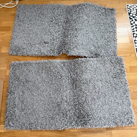 Annetaan ehjä matto. Itse suoritetun pesun johdosta värit ovat päässeet leviämään.
