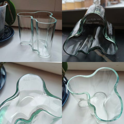 Iittala Alvar Aalto maljakko sinisestä lasista. Pohjassa kaiverrus "Alvar Aalto".