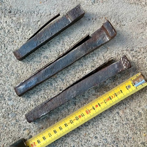 3 kpl höyläpenkin tappeja, pit 13, 5 cm. Yhdestä "jousi" katkennut.