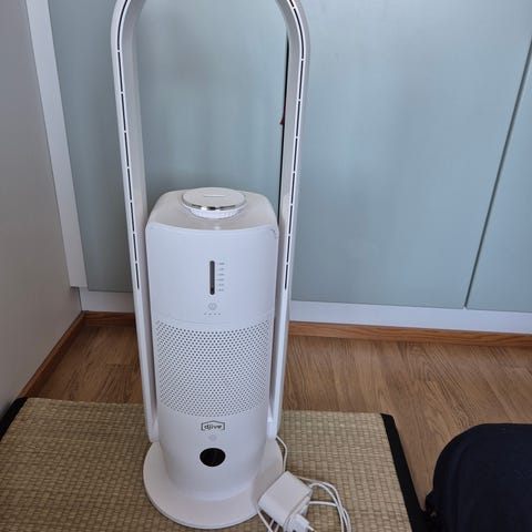 Vähän käytetty ilmankostutin, jossa myös tuuletin.