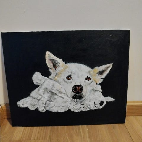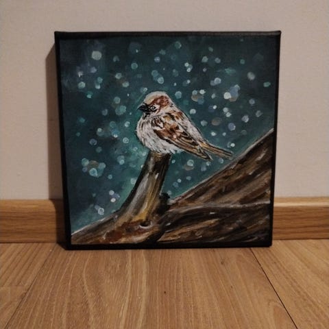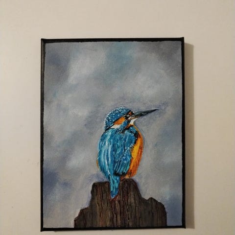 Akryylimaalaus kurjesta, koko noin 20 x30