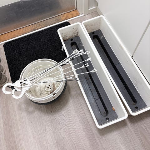 Maalattu valkoiseksi mutta vaaleanpunainen väri loistaa taustalta.