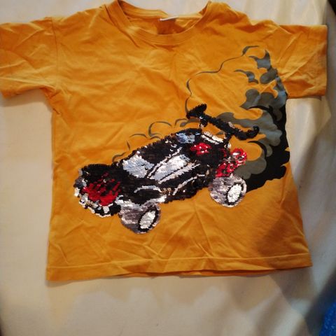 Kääntöpaljettipaita koossa 110 avaruusteemalla. Vaaleansininen pohjaväri. Siistimpänä paitana käytetty, hyväkuntoinen.