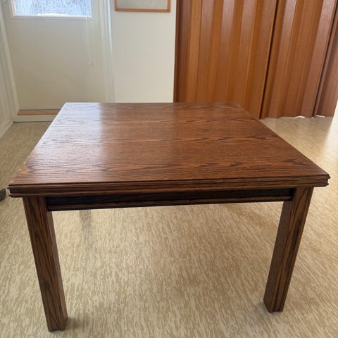 Siistikuntoinen kuvien sohvapöytä. Välitason murtuma korjattu liimaamalla + kulma(Kuvat siitä). Koko 80cm x 80cm ja korkeus 46cm.