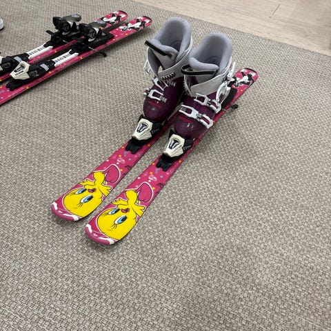 Technopro Looney Tunes Active lasten laskettelusukset ja monot. Suksissa on pinkki kuosi Looney Tunes -hahmoilla ja Salomon-siteet. Mukana valkoiset Rossignol powah monot koko 225/265. Soveltuu lapsille alppihiihtoon rinteessä. Tarkemmat pituus- ja kokomerkinnät kannattaa tarkistaa suksista ja monoista paikan päällä tai lisäkuvista.