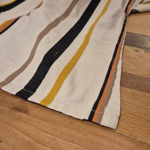 Olettaisi, että tämä on pellavaa. Pöytäliina 125*180cm. Toinen puoli vastaväreillä.