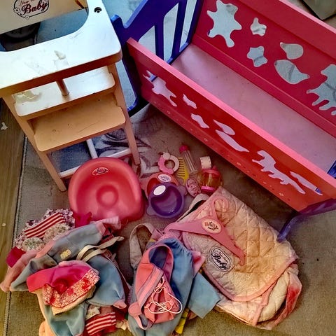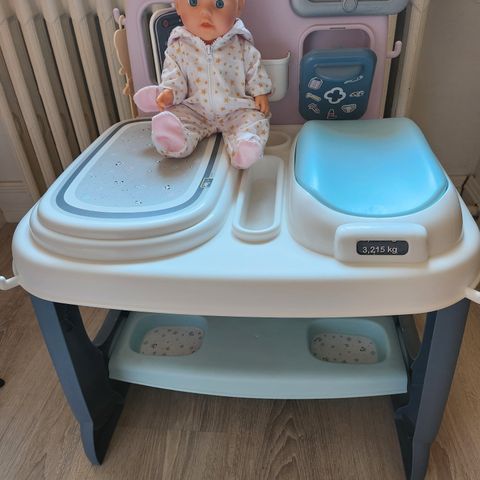 Salla luopuu itse ostamastaan nukenhoitosetistä. Hän on pitänyt tätä settiä erittäin siististi ja se on kunnoltaan uuden veroinen (ei tahroja eikä tarroja liimattu). Nukkea voi hoitaa syöttötuolissa, hoitopöydällä ja kylpeminenkin onnistuu ja setissä on myös sänky. Tämän voi ostaa vaikka lahjaksi pienelle nuken hoitajalle.