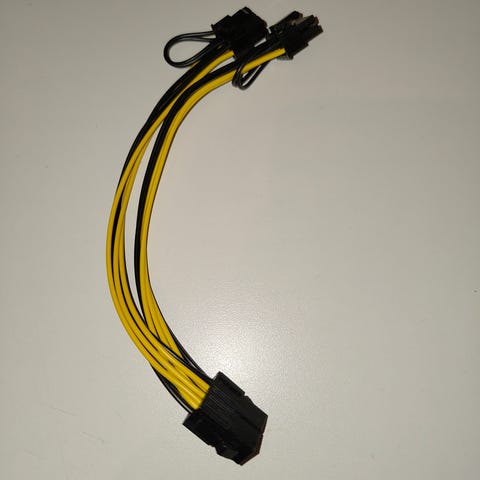 PCIe 8-pin naaras-> 2x 8-pin uros -virtakaapeli, 15cm, musta/keltainen