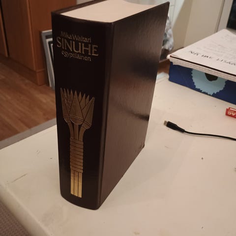 Mika Waltari Sinuhe egyptiläinen -romaani pokkarikirjana. Kyseessä on pehmeäkantinen vuoden 1990 painos (pokkari).