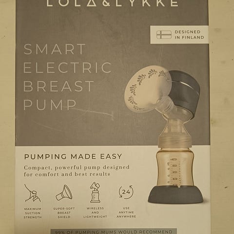 Hyvin kahden lapsen kanssa palvellut sähköinen rintapumppu kaikkine oheisvermeineen. Usb-c kaapeli on mennyt hukkaan, mutta voin laittaa mukaan vastaavan kaapelin ja laturin, jos on tarvis.