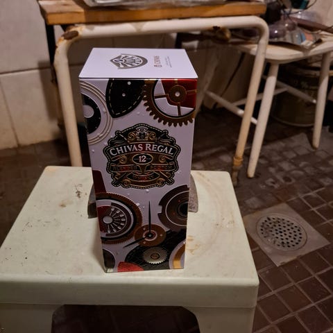 Upea Chivas Regal pullon teräksinen koristepakkaus. Keräilykappale