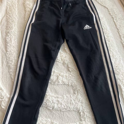 Settinä kahdet Adidaksen pikkuvikaiset verkkarihousut koossa 140. Vastaavat minusta kokoa 134 tai 134/140. Kunto molemmissa tyydyttävä. Yhä kuitenkin sopivat huolettomaan arkimenoon, ulkohousuiksi puistoon tms.
