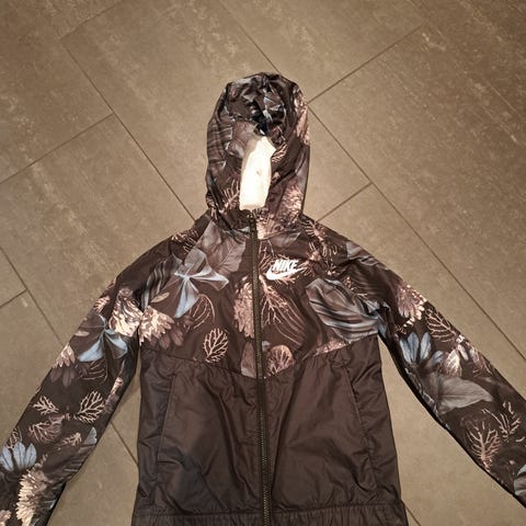 Nike tummansininen tuulitakki 137/147. Siisti kunto, nimikoitu.