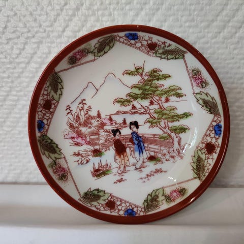 Vintage posliiniset lautasliinarenkaat (6 kpl), Japani / Lahjatukku Oy