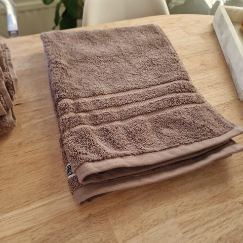 Pyyhe on väriltään vanhan roosan sävyinen (virallinen väri Lavender).