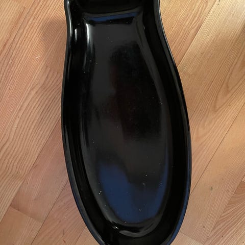 Käyttämätön keraaminen laiva-tarjoiluastia puisessa lahjalaatikossa