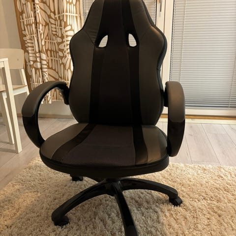 Tyylikäs, lähes käyttämätön tummanharmaa toimistotuoli rullilla, ei käytön jälkiä. Korkeutta voi säätää.